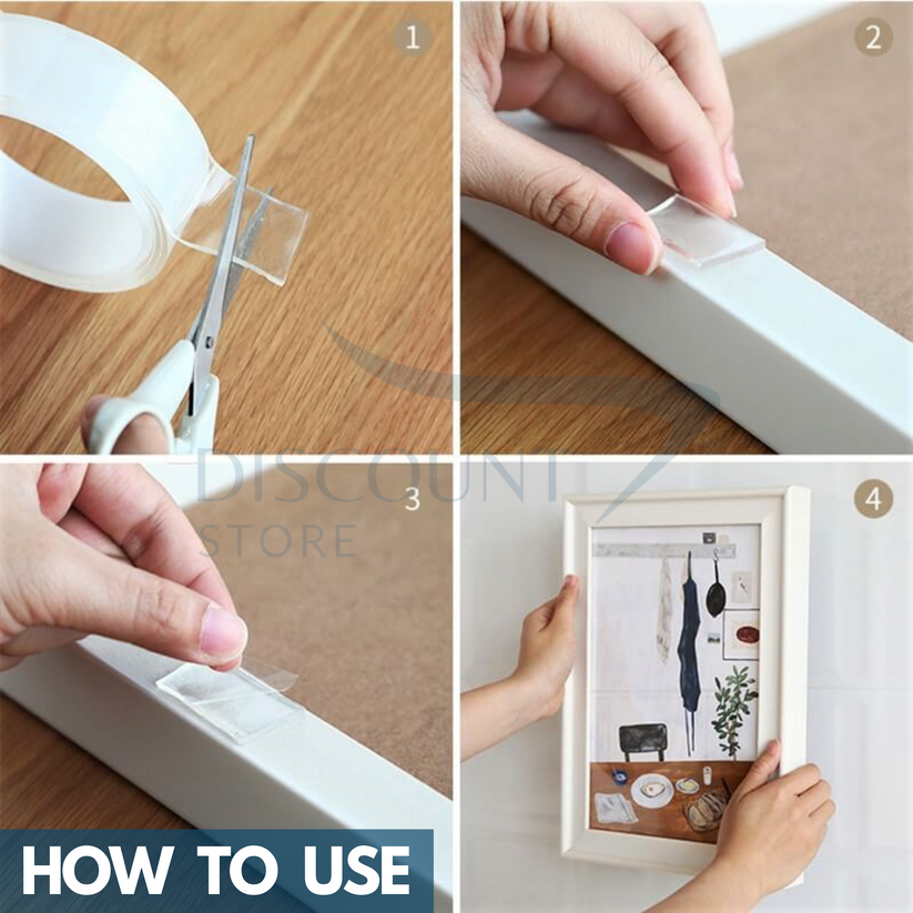 The double-sided traceless tape can be easily cut to your desire length and pressed to the smooth and dry surfaces.