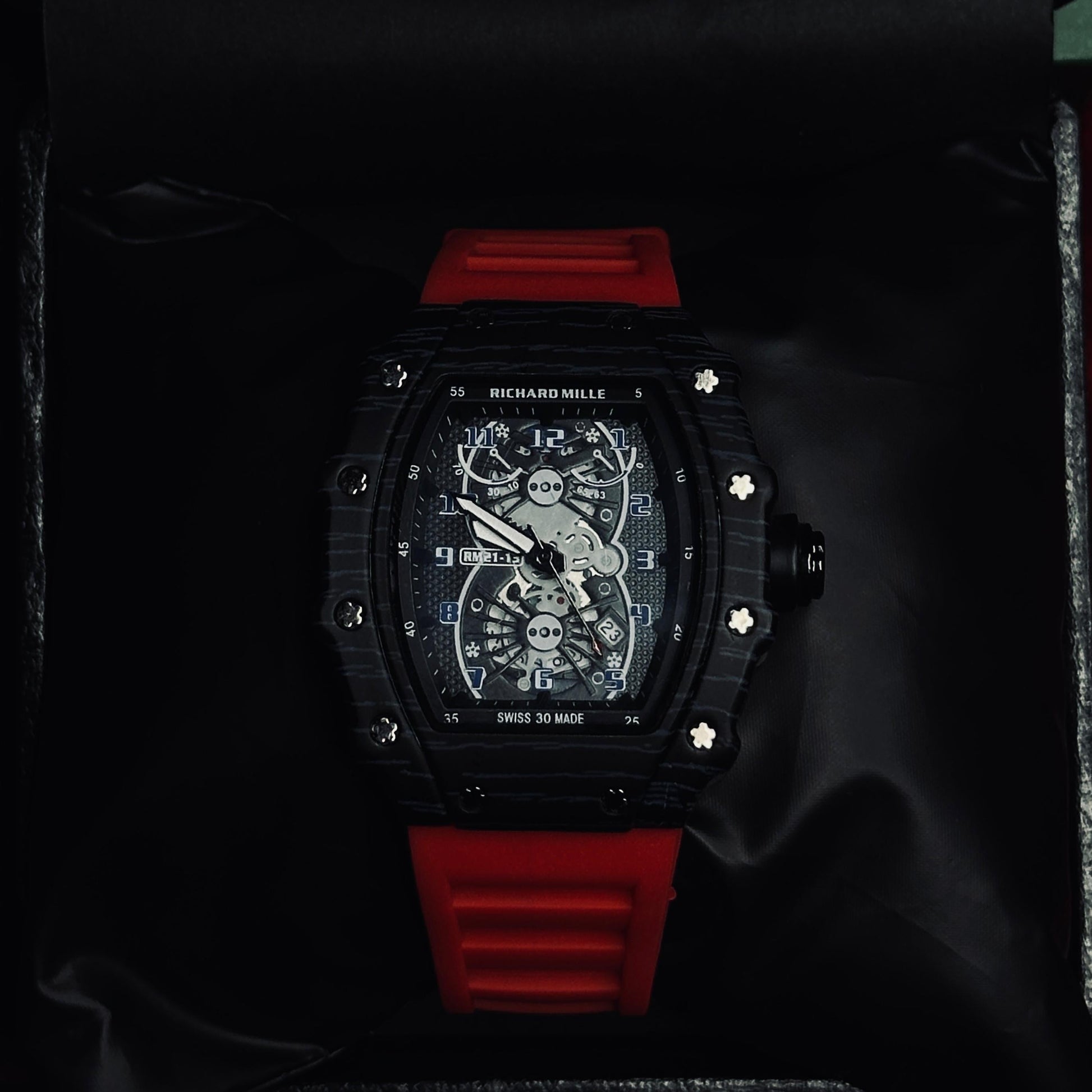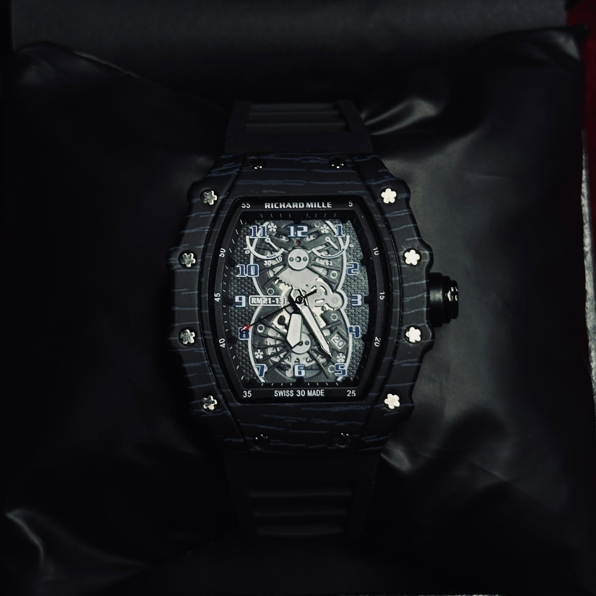 Introducing the epitome of sophistication and precision: the Quartz Movement Date Watch, an exquisite homage to the renowned Richard Mille timepiece. Crafted with meticulous attention to detail, this timepiece seamlessly blends luxury with functionality, exuding an aura of timeless elegance.