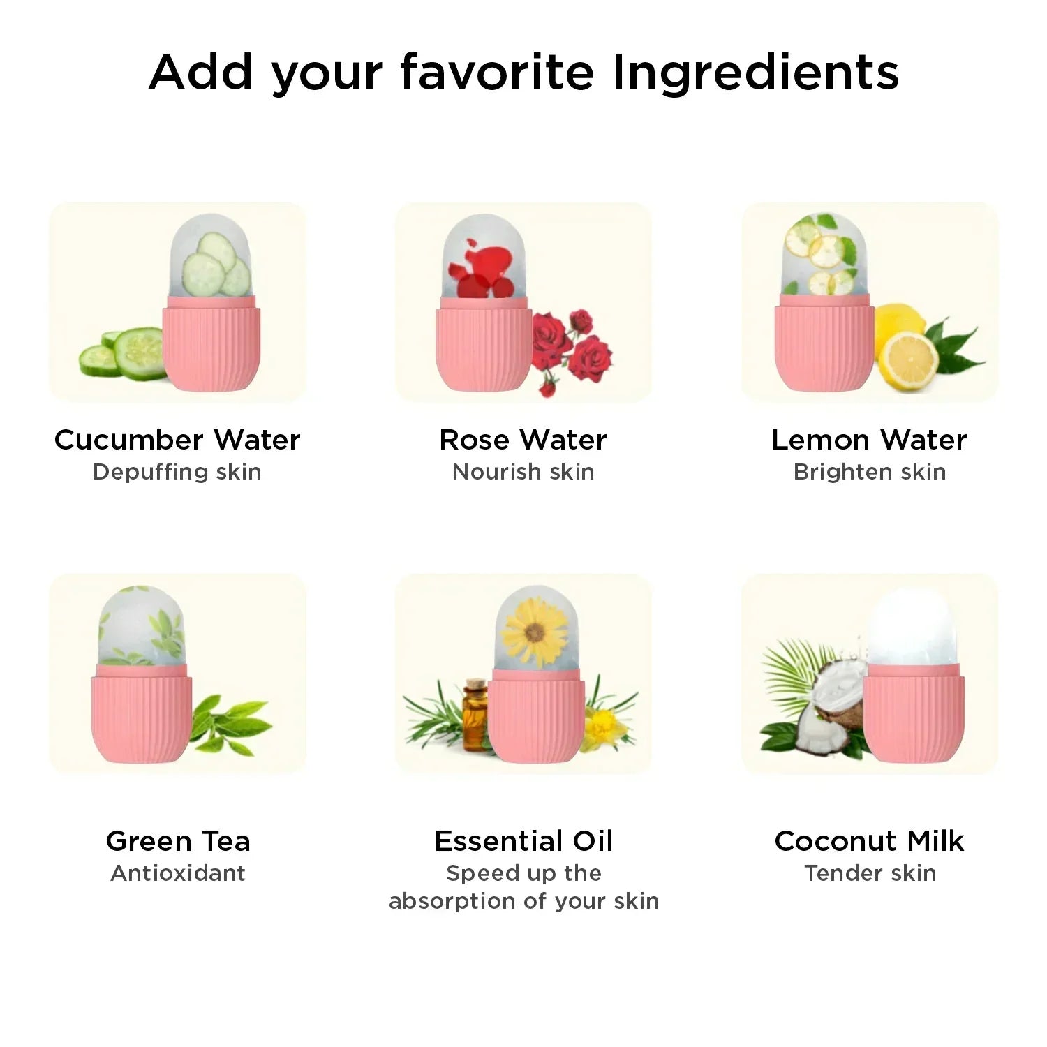 • Once frozen, massage your skin with the ice roller for 30 seconds.